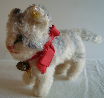 Title (ebay affiliate link): Vintage old Steiff mohair Cat Tabby with ID's, 1950s teddy bear, 14 cm