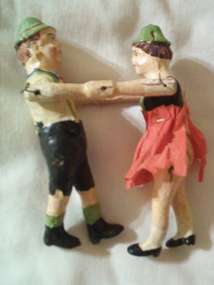 Vintage Old Rare Composition Boy & Girl Dancers - Christmas Ornament "Look"