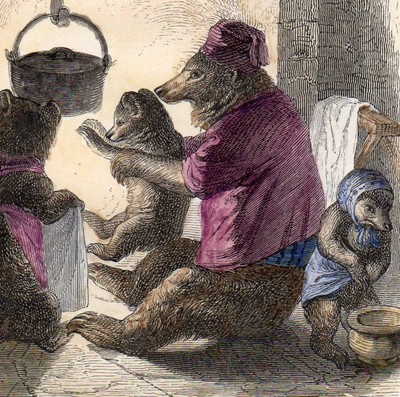 Title (ebay affiliate link): 1842 GRANDVILLE - THE BEAR FAMILY KEEPING WARM - Hand Colored Engraving