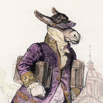 Title (ebay affiliate link): 1842 GRANDVILLE - THE DONKEY BOOKEEPER -Mule Accountant - Hand Colored Engraving