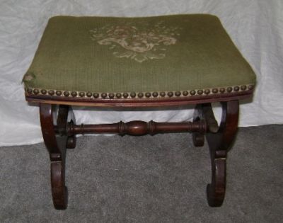 ANTIQUE NEEDLEPOINT X FRAME FOOTSTOOL