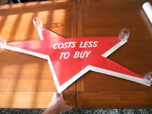 Henry J Kaiser Frazer dealer showroom poster Costs Less to Buy die-cut 1950s