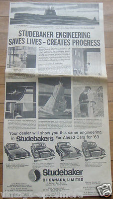 RARE 1963 CANADIAN STUDEBAKER NEWSPAPER AD AVANTI LARK GRAN TURISMO WAGONAIRE