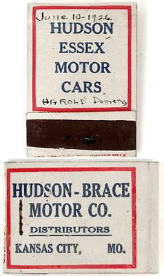 1926 HUDSON ESSEX MOTOR CARS Matchbook