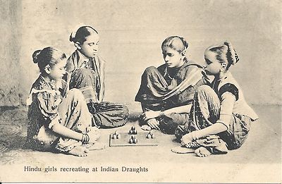 Title (ebay affiliate link): INDIA Old vintage postcard HINDU GIRS RECREATING AT INDIAN DRAUGHTS, c.1910