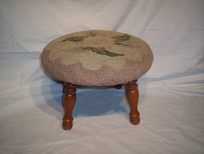 Title (ebay affiliate link): Vintage Round Hooked Rug Covered Foot Stool 9 1/2 Inches tall & 13 1/2 Across