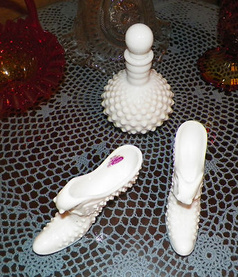 Title (ebay affiliate link): Presidents Day SALE ~ Pair of Milkglass Hobnail Shoes ~ FENTON CAT MILK Glass