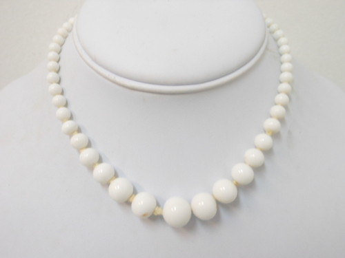 Title (ebay affiliate link): VINTAGE SIGNED JAPAN SILVER TONE MILK GLASS GRADUATED BEAD NECKLACE M4855