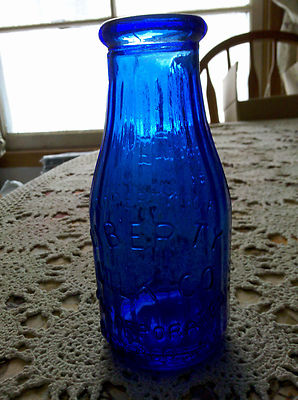 LIBERTY MILK BOTTLE COBALT BLUE PINT BUFFALLO NY Bubble glass: EXCEL COND