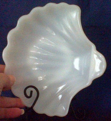 Title (ebay affiliate link): Vintage White Milk Glass Shell Shaped Candy Dish, Plate, Bowl, Trinkets, EXC.CND