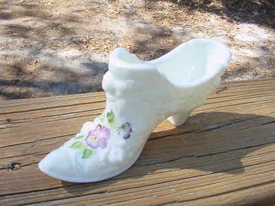 Title (ebay affiliate link): Vintage FENTON Shoe Boot White Florals Hand Painted Artist Signed Milkglass USA