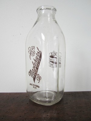 Title (ebay affiliate link): Vintage Maplehurst Farm Dairy Milk Bottle Rexford, N.Y. Pyro Glaze Glass