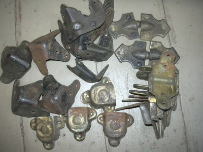 ANTIQUE STEAMER TRUNK PARTS TRIM SLAT ENDS CORNERS HANDLE ENDS STOPS