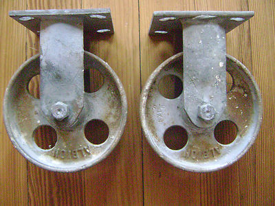 2 industrial machine age cast iron cart wheels