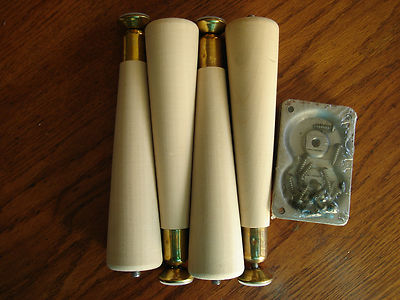 Title (ebay affiliate link): 4 Vtg Wood Mid-Century 50s Furniture Taper Legs Feet & Hardware New Old Stock 8"