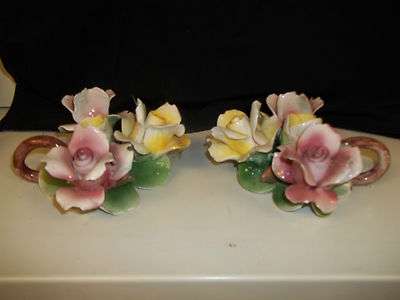 Vintage set of Capodimonte Flowered Candle Holders Made In Italy