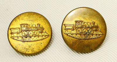 Set 2 Antique Brass Metal Train Railroad Buttons