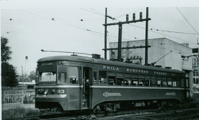 Small B&W Photo Red Arrow Lines/PSTC Brill #83 69th St Upper Darby PA 1947