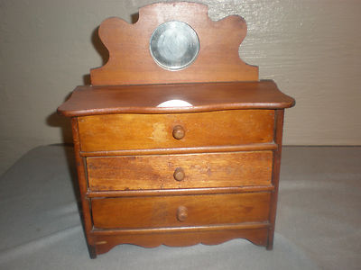 Title (ebay affiliate link): Antique Salesman sample wood dresser, mirror, doll/childs furniture.