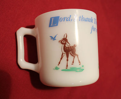 Delightful Childs Prayer Mug Hazel Atlas Milkglass Deer Bambi Vintage