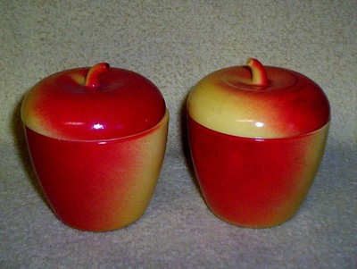2 Vintage Milk Glass Apple Jelly Jars W/ Lids Hazel Atlas