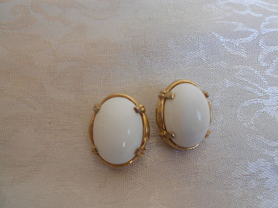 Vintage Jomaz Signed White Milk Glass Clip Earrings!