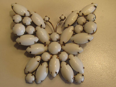 Title (ebay affiliate link): Vintage WEISS BUTTERFLY Brooch Pin signed Milkglass perfect