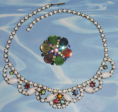 Vintage JULIANA Milk-glass Necklace & Moonglow Brooch