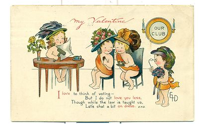 Title (ebay affiliate link): Sufferagettes Sufferage theme Valentine Post Card by EHD Ethel Dewees