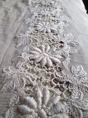 2 antique lace curtain trim embroidered vintage dolls 1 yard 15" X 23" and 40"