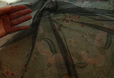 ANTIQUE FRENCH SILK BLACK TULLE LACE DOLL DRESS MILLINERY ETHEREAL FABRIC TRIM