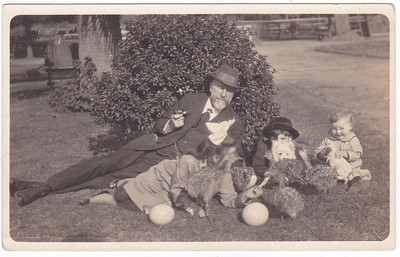 old rppc MAN PIPE CHILDREN BABY ostrich POMERANIAN DOG BIG EGGS