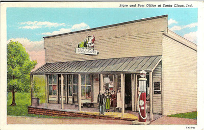 Title (ebay affiliate link): Vintage Postcard Santa Claus Indiana Store and Post Office