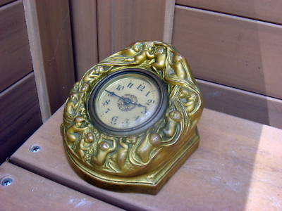 ANTIQUE 1902 BRONZE COPPER CHERUB DESK CLOCK