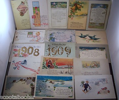 Title (ebay affiliate link): Lot of 32 NEW YEAR Collectible Holiday Vintage Postcards 1907-1932 Date Range