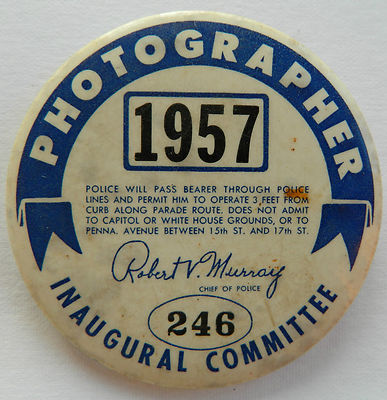 RARE 1957 IKE INAUGURAL COMMITTEE - PHOTOGRAPHER'S PINBACK