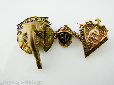 Title (ebay affiliate link): VINTAGE 1940 GOP Republican Presidential 3D ELEPHANT Pin & Washington DC Brooch