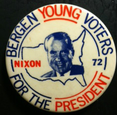 Great 2 Inch Bergen Young Voters for Nixon for Prez Pinback Button Cello Badge