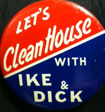 Title (ebay affiliate link): Fantastic 2 1/4 Inch Let's Clean House with Ike and Dick Pinback Button