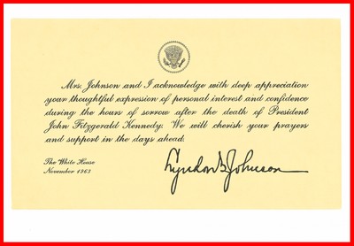 Title (ebay affiliate link): Thank You Card President Lyndon Johnson re Kenney Assassination