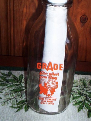 Title (ebay affiliate link): VINTAGE QUART SIZE GLASS MILK BOTTLE THOMPSON GLASS' DAIRY PRODUCTS