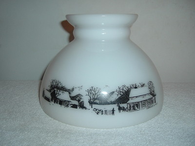 Vintage Currier & Ives Milk Glass Oil Lamp Shade