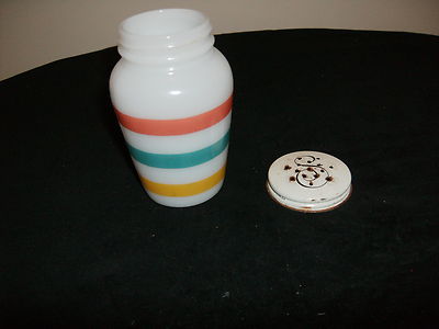 1 Striped-Banded Anchor Hocking Salt Shaker Milk Glass-Red-Green-Yellow Bands