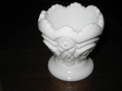 VINTAGE MILK GLASS HEAVY PRESCUT DESIGN UNKNOWN MAKER EGG CUP VOTIVE ?