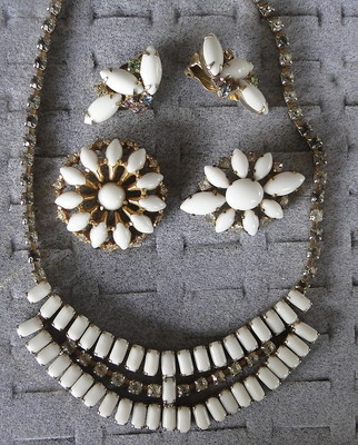 MILK GLASS AND RHINESTONE JEWELRY LOT MARVELLA GERMANY