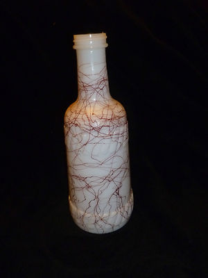 Title (ebay affiliate link): Vintage Milk Glass Red Drizzle Welchs WINE BOTTLE Decanter