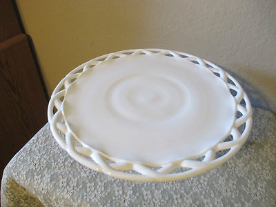 Title (ebay affiliate link): Vtg White Milk GLass Pedestal Cake Plate Stand Salver Cut-Out Border