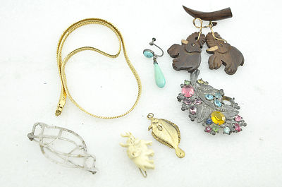 Lot of 6 Vintage Antique Jewelry Costume Necklace Earrings Booch Pin Elephant