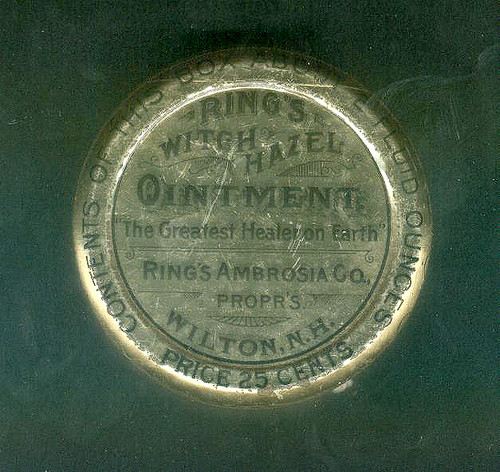 Title (ebay affiliate link): c1900-10 RING'S WITCH HAZEL OINTMENT TIN, Wilton, NH, Apothecary, Medical NR