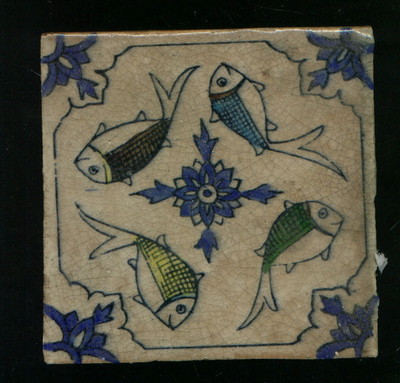 ANTIQUE HANDMADE PERSIAN TILE, PAINTED & GLAZED CERAMIC # 15